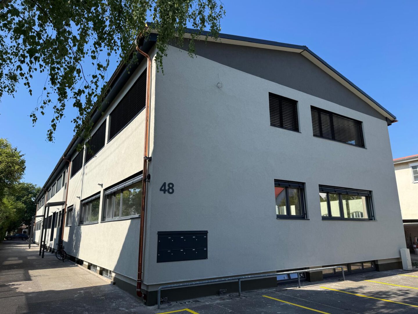 Das Gebäude wurde aktuell komplett saniert. Die Lagerflächen sind sauber, trocken, gut beleuchtet und über eine Rampe eben zugänglich.